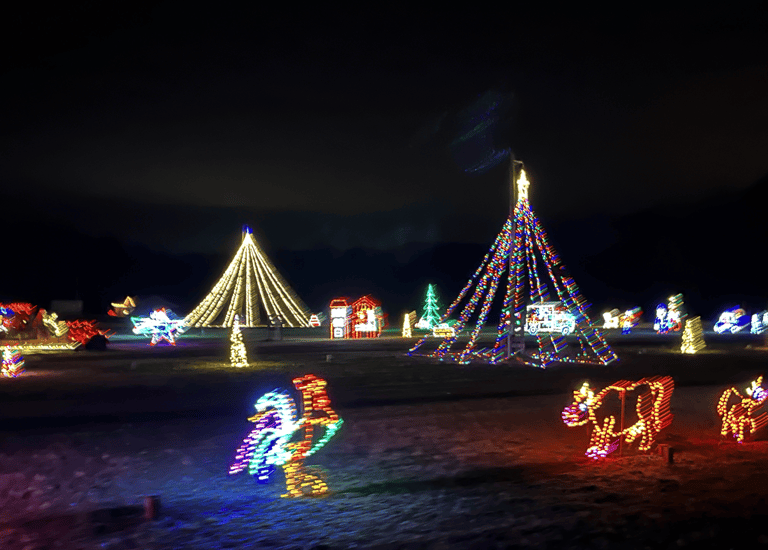 Experience a magical Christmas lights adventure on the farm.